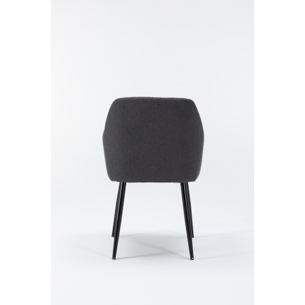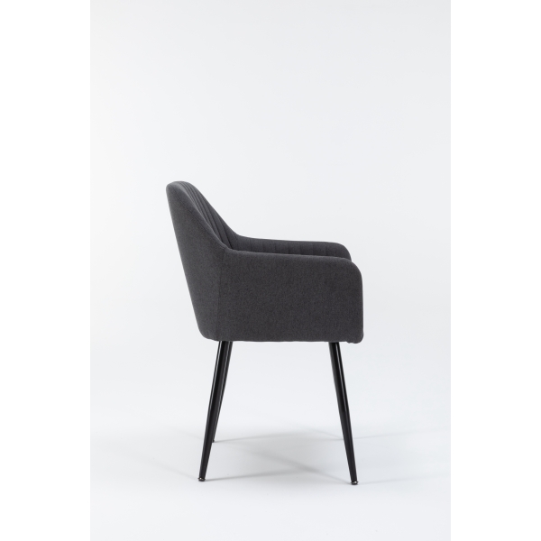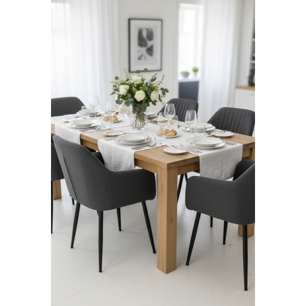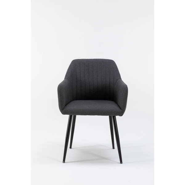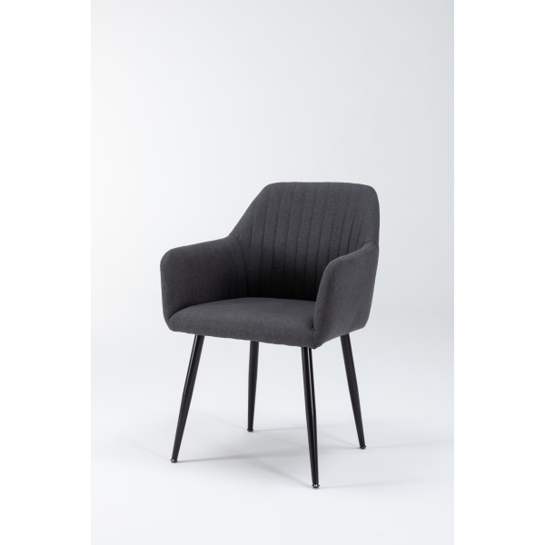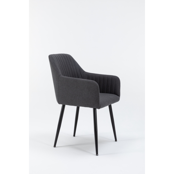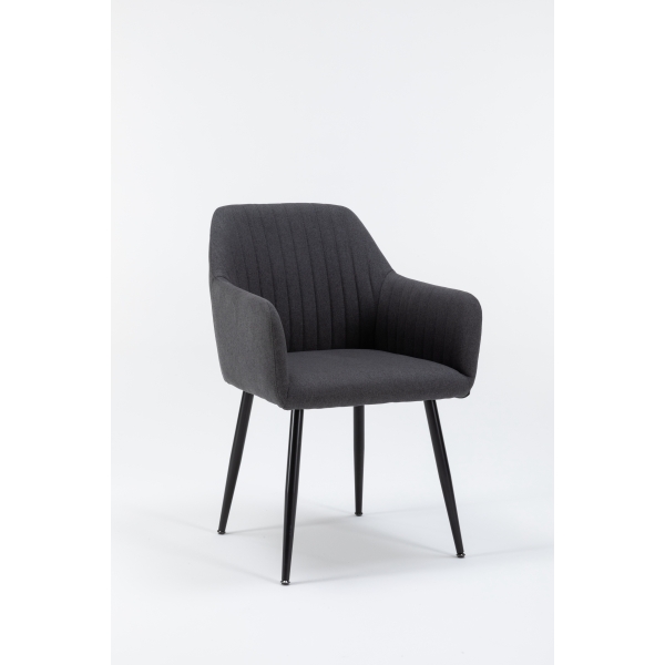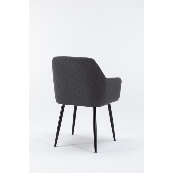 La Silla de Comedor Moderna URSA combina estilo y funcionalidad en una sola pieza. Su estructura ergonómica con respaldo acolchado y reposabrazos integrados ofrece una experiencia de confort ideal para largas sobremesas o reuniones. Tapizada en tela gris de alta calidad, aporta un toque sofisticado y versátil que se adapta a cualquier decoración. Las patas metálicas negras, resistentes y estilizadas, garantizan estabilidad y durabilidad, mientras su diseño minimalista realza la elegancia del espacio. Perfecta para comedores, salones o incluso espacios de trabajo con estilo.