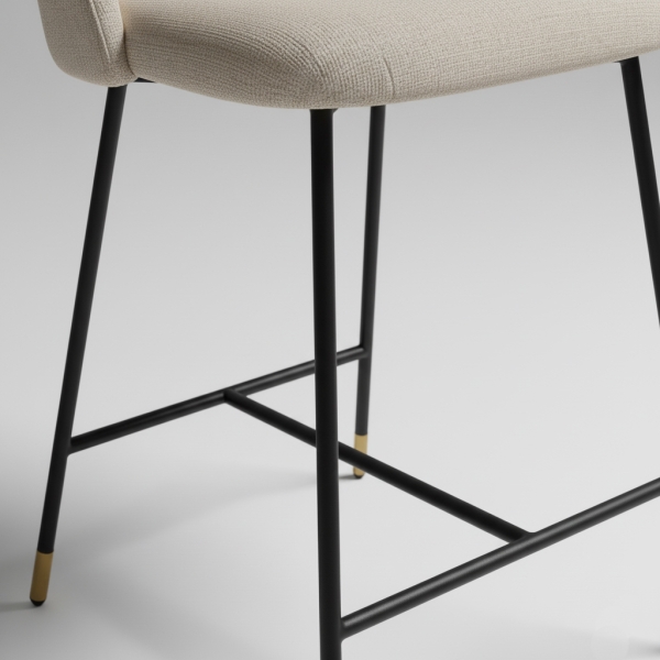 El taburete Libra de BORDECOR es la pieza perfecta para aportar estilo y comodidad a tu hogar. Su diseño envolvente y tapizado en tela beige ofrecen una experiencia acogedora, mientras que la estructura metálica negra con detalles dorados añade un toque sofisticado y resistente. Ideal para barras de cocina, islas o espacios de reunión, este taburete combina funcionalidad y estética, convirtiéndose en un elemento decorativo que realza cualquier ambiente.