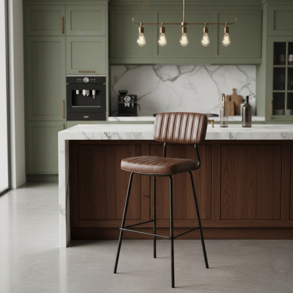 El pack de 4 taburetes Cursa de BORDECOR es la opción perfecta para quienes buscan funcionalidad y diseño con carácter. Su estilo retro e industrial se refleja en el tapizado de polipiel marrón con costuras decorativas y la estructura metálica negra que garantiza resistencia y estabilidad. Ideales para barras de cocina, islas o espacios de reunión, estos taburetes combinan comodidad y estética, aportando un toque sofisticado y urbano a cualquier ambiente.