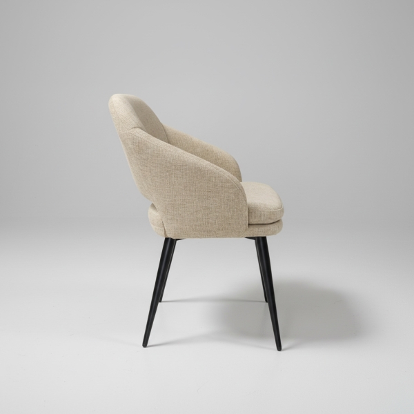 La silla Mensa de BORDECOR es la elección perfecta para quienes buscan estilo y funcionalidad en su hogar. Su diseño contemporáneo, con respaldo envolvente y asiento acolchado, ofrece una experiencia cómoda y elegante. El tapizado en tela color beige aporta calidez y versatilidad, mientras que las patas metálicas negras garantizan estabilidad y resistencia. Ideal para comedores, salones o espacios de reunión, la silla Mensa se convierte en un elemento decorativo que realza cualquier ambiente.