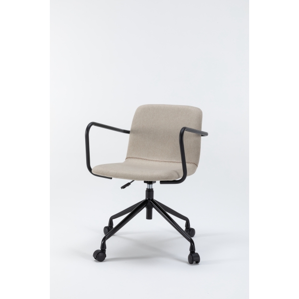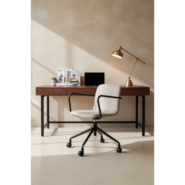 La silla Pictor de BORDECOR es la solución perfecta para quienes buscan confort y diseño en su hogar. Tapizada en tela color beige, aporta calidez y sofisticación a cualquier espacio. Sus brazos fijos metálicos en color negro ofrecen soporte y resistencia, mientras que la base metálica negra con ruedas garantiza movilidad y estabilidad. Además, cuenta con un mecanismo que permite girar y ajustar la altura, adaptándose a tus necesidades. Ideal para zonas de trabajo, estudios o espacios multifuncionales, la silla Pictor une practicidad y estética en un solo producto.